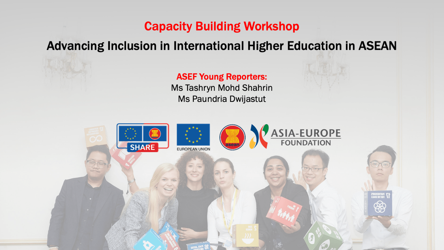 Two ASEF Young Reporters covered the Capacity Building Workshop, writing articles and a report to engage youth and a broader audience beyond higher education professionals. These reporters were Ms Paundria DWIJASTUTI, Indonesia; and Ms Tashryn Mohd Shahrin, Singapore.
